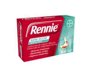Rennie®est un Antiacide indiqué chez l’adulte (à partir de 15 ans) dans les brûlures d’estomac et les remontées acides.